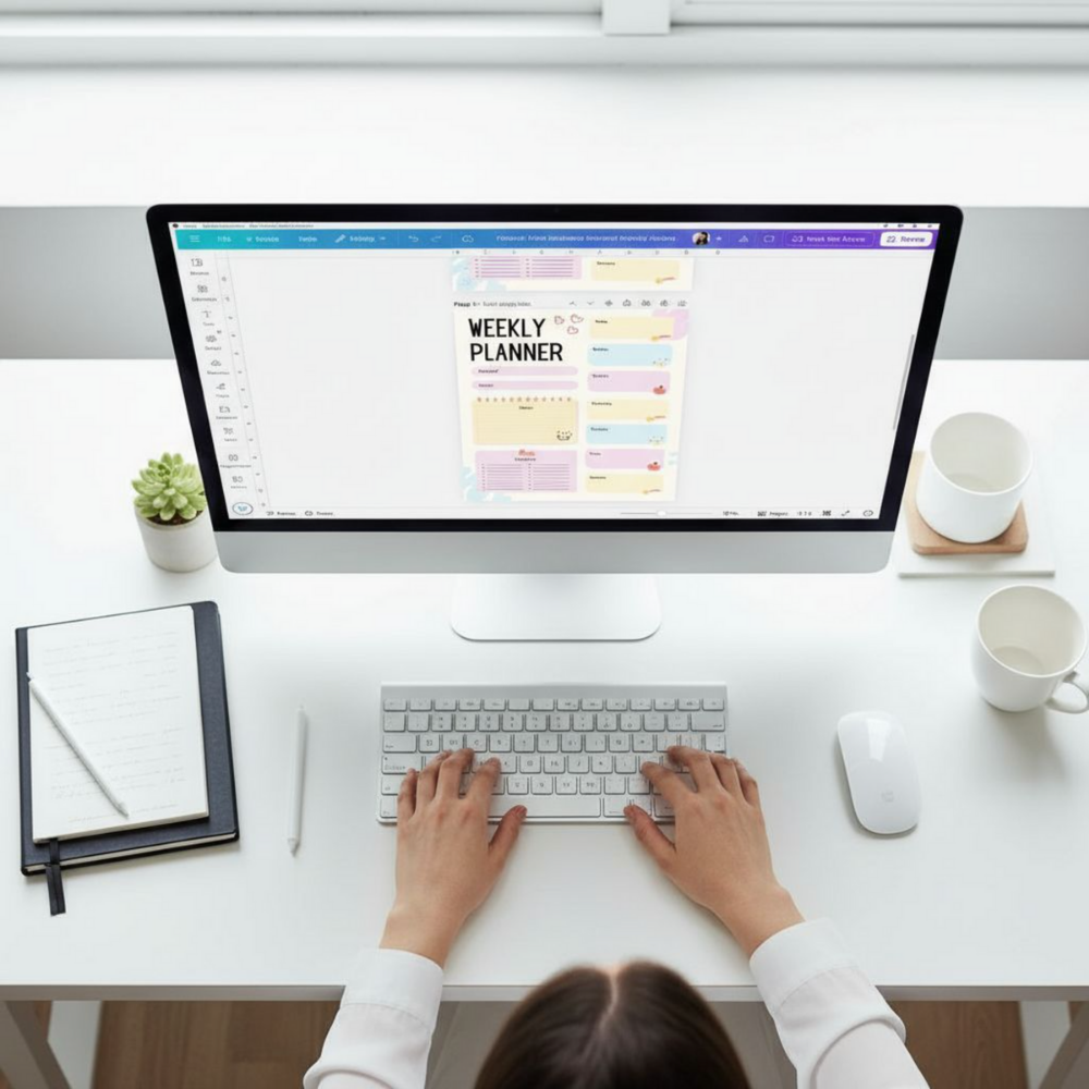 - Canva: Easy and beginner-friendly. Perfect for planners, checklists, and workbooks.
