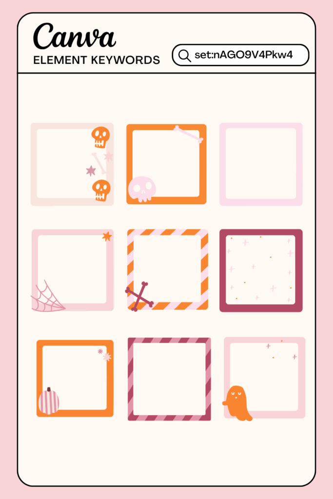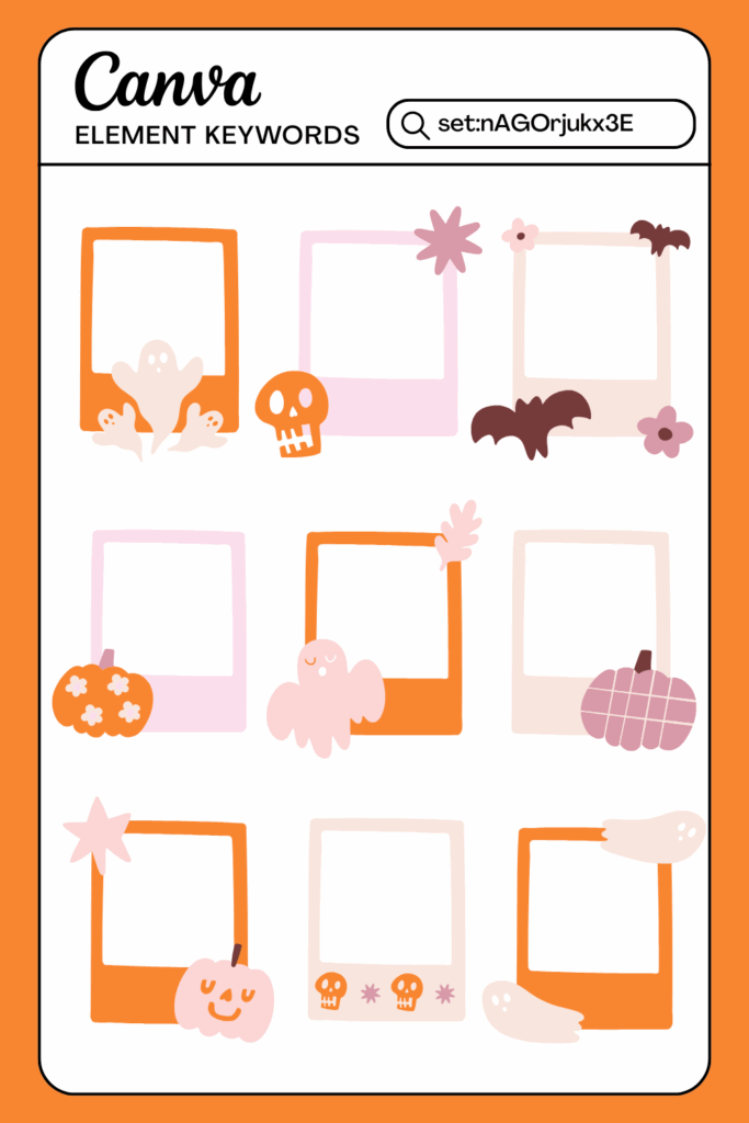 These simple frames come decorated with pumpkins, webs, and skulls. They’re a go-to for Instagram stories, scrapbooking, or designing Halloween posts for Instagram that feel festive but still minimal.